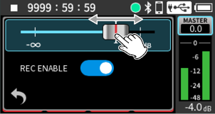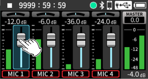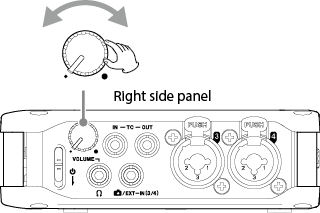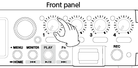 Turn the input level adjustment knobs to adjust the audio signal levels recorded in recording files.