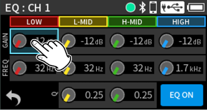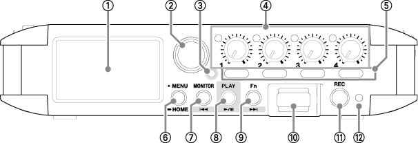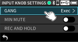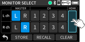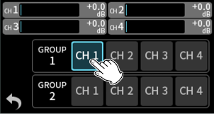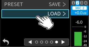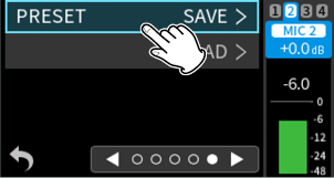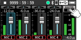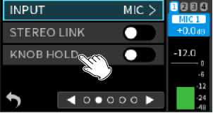 When using input jacks 1–4, select “MIC” or “LINE”.