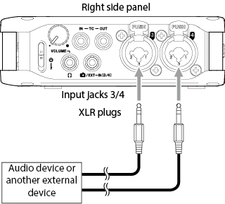 To receive timecode from the TC IN jack, input must be in the specified level range for LTC.