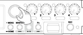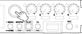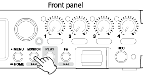 Current project during playback The transport indicator will light. During playback, the MONITOR button will function as |