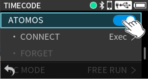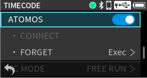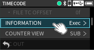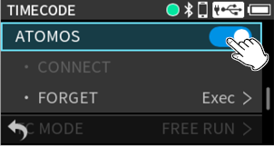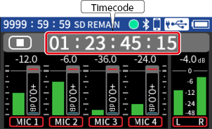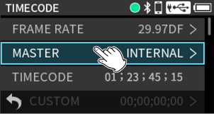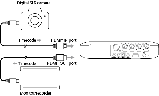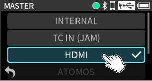 Press the MENU button and set TIMECODE > MASTER to “HDMI”.