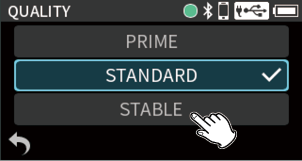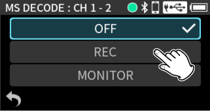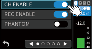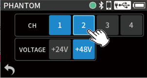 Input through input jacks 1–2 Phantom power unused 48kHz STEREO WAV (BWF) 24-bit recording |