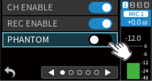 Make this setting when using mics that require phantom power.