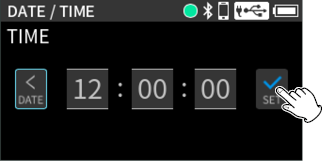 After setting the date and time, tap “SET” to confirm.