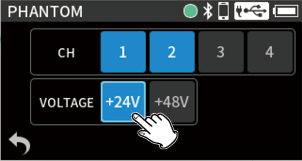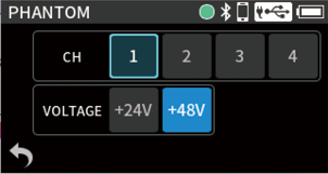 When using phantom power, the operation time might be reduced depending on the mics being used.