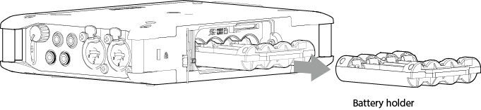 marks as shown in the battery holder. Then, reinstall the case in the unit.
