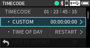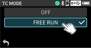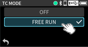Press the MENU button and set TIMECODE > TC MODE to “FREE RUN”.