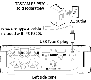 AC adapter (TASCAM PS-P520U, sold separately)