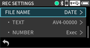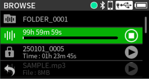 If a file size exceeds 4 GB when recording, the unit will automatically continue recording in a new file (file incrementation).