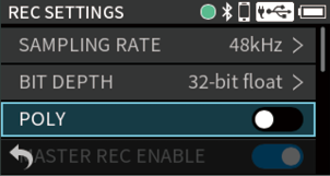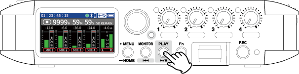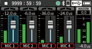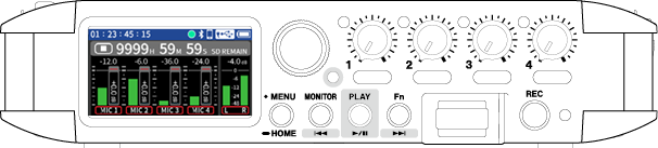 入力端子1/2/3/4入力 6ch WAV(BWF) / 48 kHz 32-bit floatで録音 ヘッドホン接続 HDMI®未接続 |