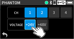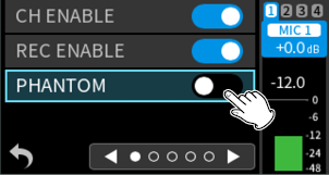 ファンタム電源を必要とするマイクを使用するときに設定します。