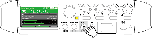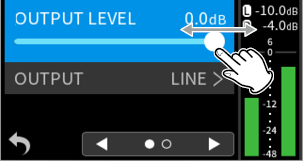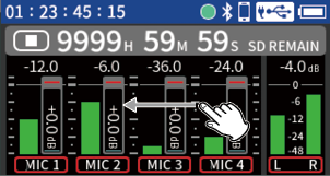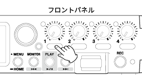 録音ファイルに記録される音声信号レベルをインプットレベル調節つまみを回して調節する。