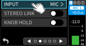 入力端子1 / 2 / 3 / 4を使用時は、「MIC」か「LINE」を選択してください。