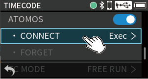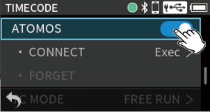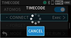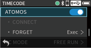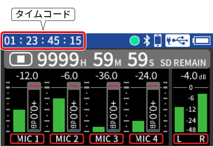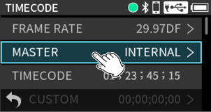 MENUボタン > TIMECODE > MASTERを「TC IN(JAM)」に設定してください。