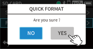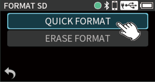 1.「QUICK FORMAT」または「ERASE FORMAT」をタップする。