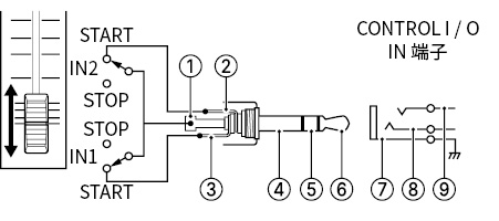 3.5 mmTRSジャック (TIP: IN1、RING: IN2、SLEEVE: GND) 外部コマンド受信アクティブロー |