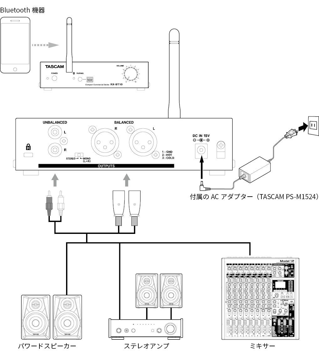 TASCAM RX-BT10は、スマートフォン・タブレットなどBluetooth端末のオーディオを既存の音響システムに手軽に追加可能な業務用Bluetoothオーディオレシーバーです。