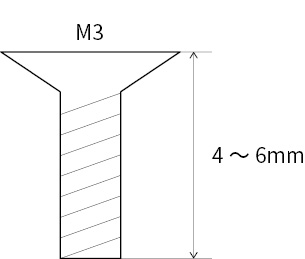 やむを得ず紛失された場合は、M3で長さ4~6mmの皿ネジをご使用ください。