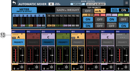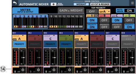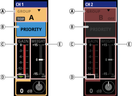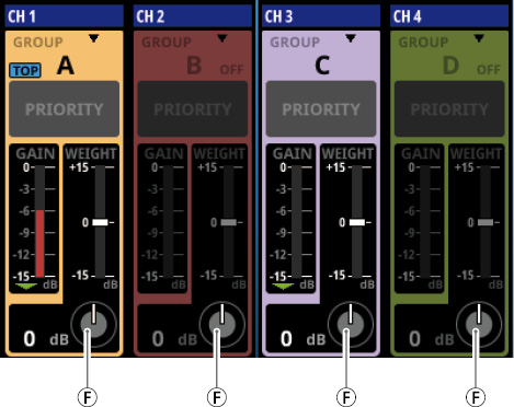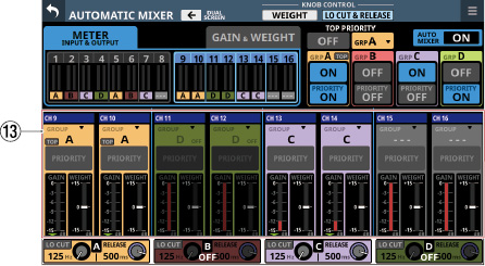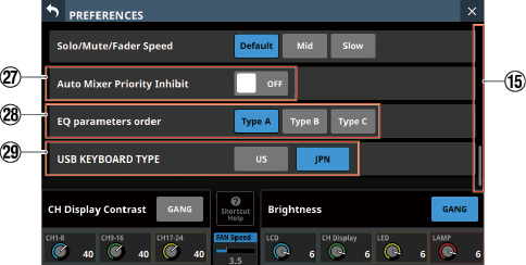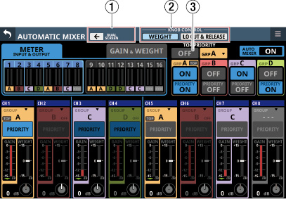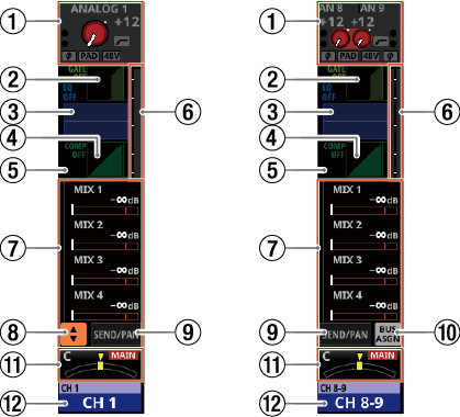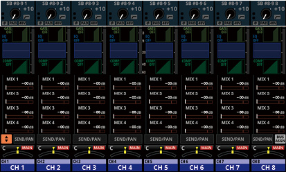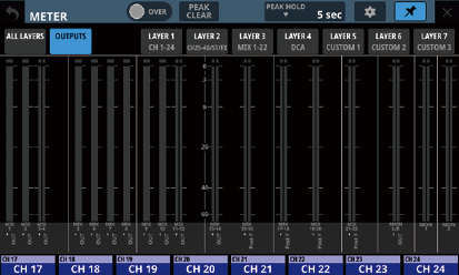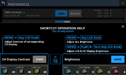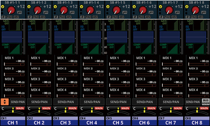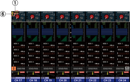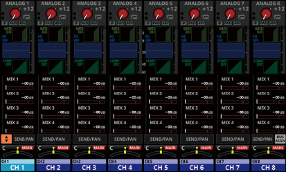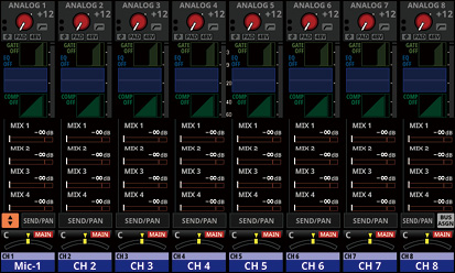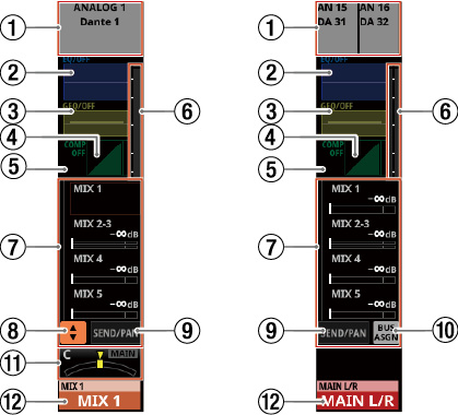 16/24 カラーLED付きチャンネルネームLCD(入力レベルメーター、ゲインリダクションメーターの表示にも対応)