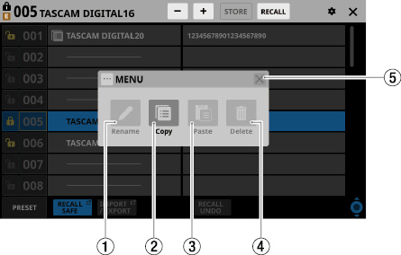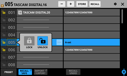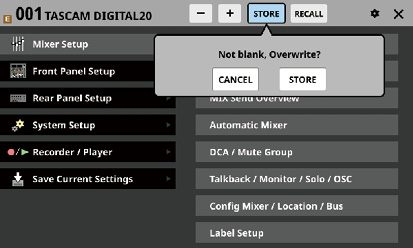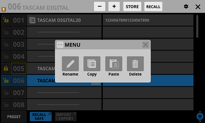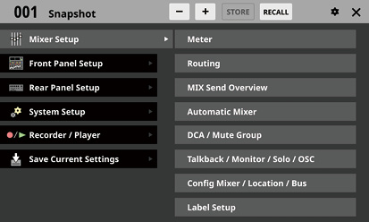 最後にStore/RecallしたSnapshotを「カレントSnapshot」と表記します。