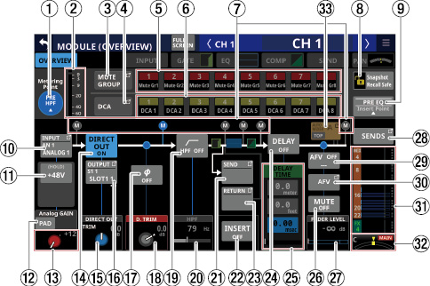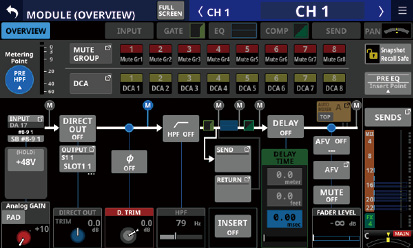 8つのLCDノブを備えたタッチスクリーンを8つのチャンネルモジュールごとに装備し、各チャンネルの各種パラメーターを同時に俯瞰・確認しながら直観的な操作ができます。