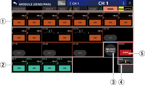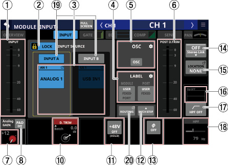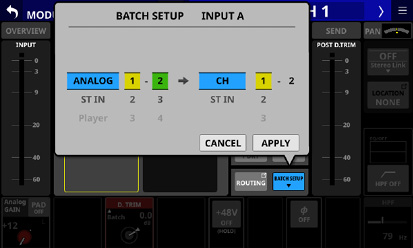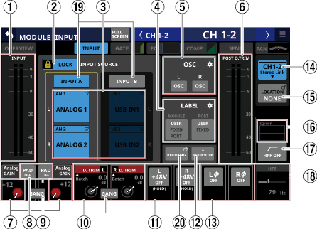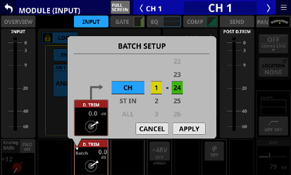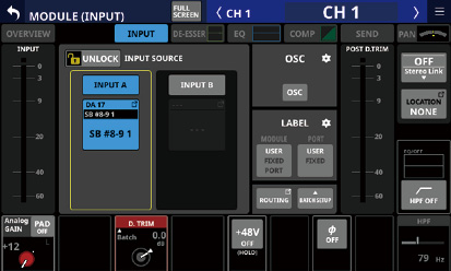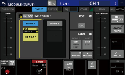 Stereo Link設定がオンのCH1-40モジュール