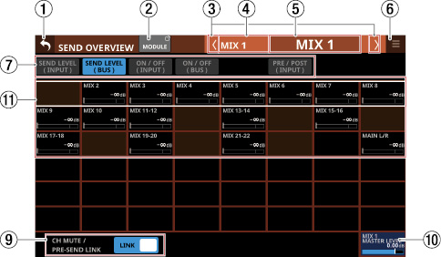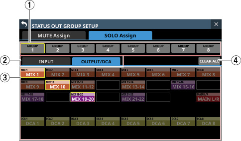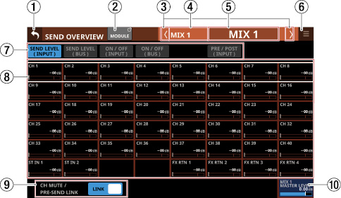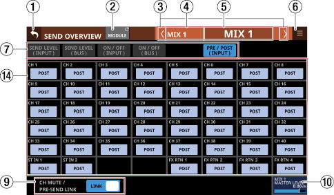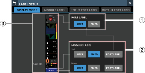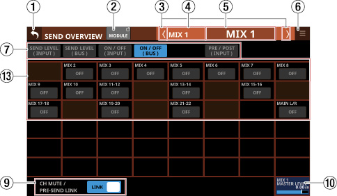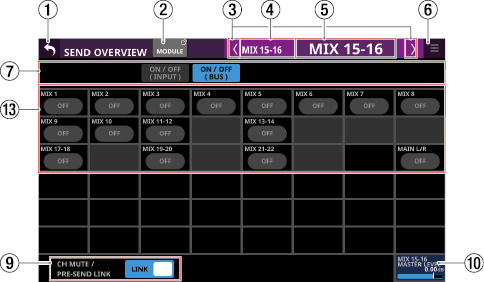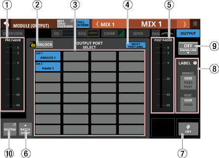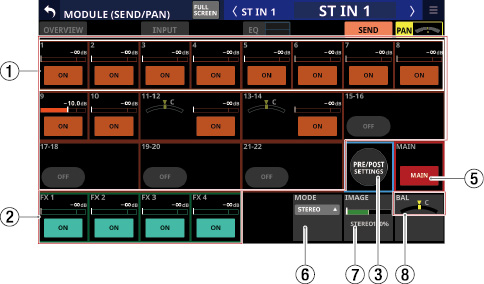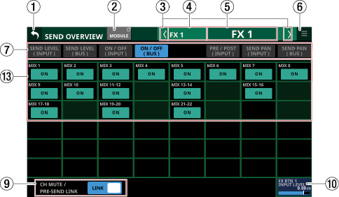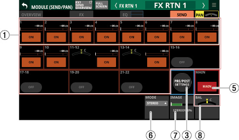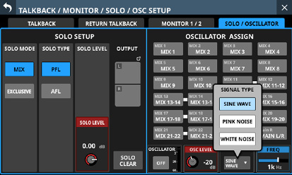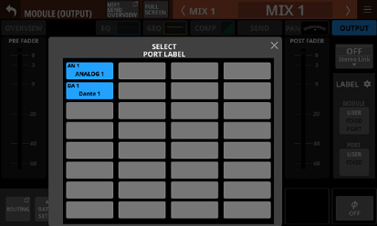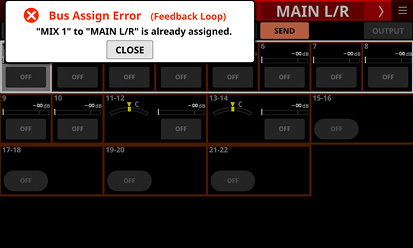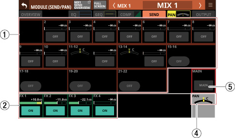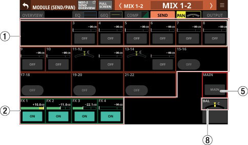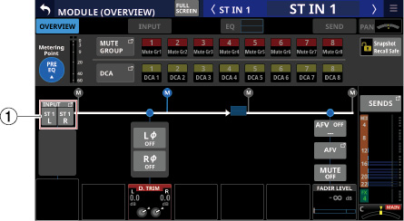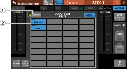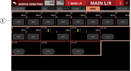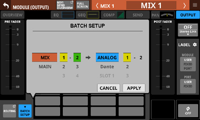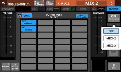 Stereo Link設定がオンのMIX1-22モジュール