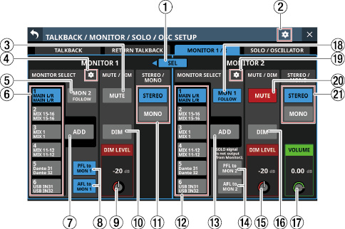 2系統のモニターセクション
