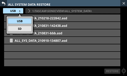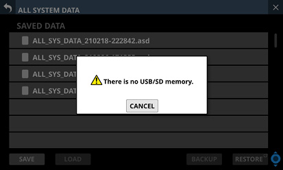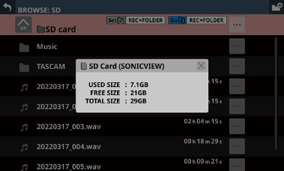 このリストに掲載されているSDカード/USBメモリーをご使用ください。もしくは、タスカム カスタマーサポートまでお問い合わせください。