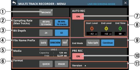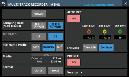ステレオ録音(SDカード)/ステレオ再生(SDカード/USBメモリー)