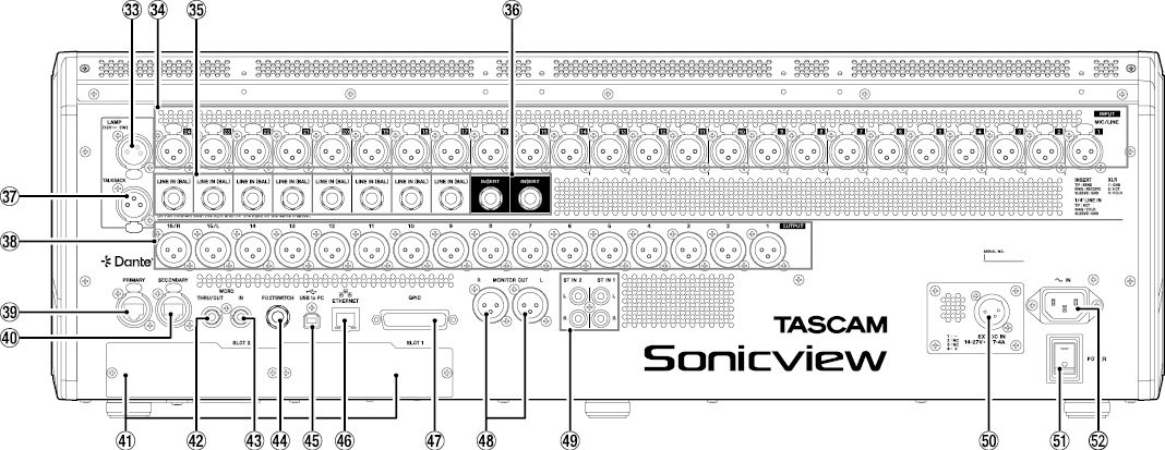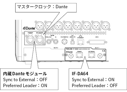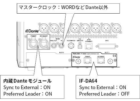 2 TASCAM スロット(別売カード:MADI、AES/EBU、Analog out、Dante、32トラックMTRに対応)